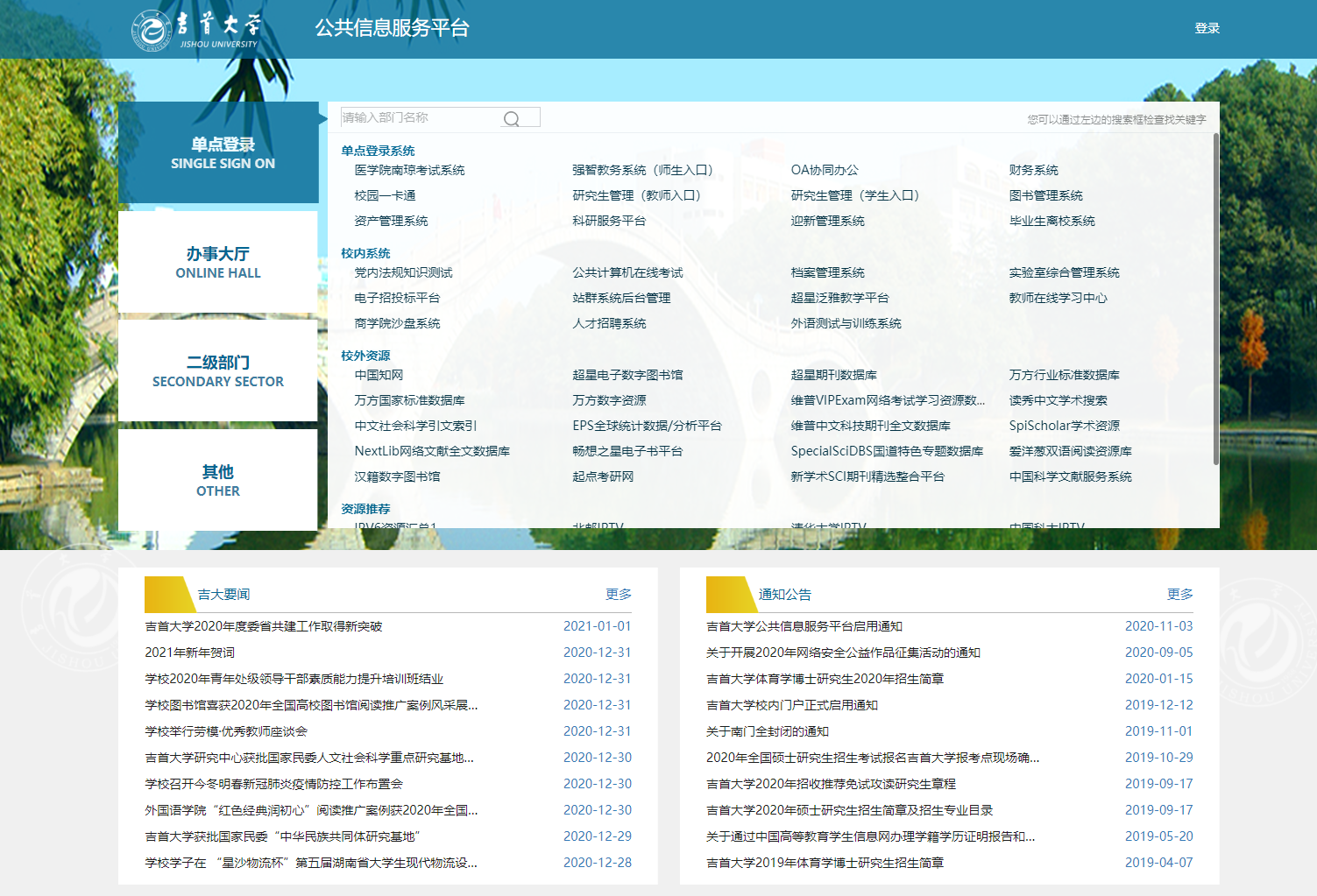 为方便广大师生在非校园办公区域访问校内资源,提升网络服务使用体验,信息网络中心推出了公共信息服务平台。该平台最主要的功能是提供了非办公区用户访问校园网资源的途径,同时还集成了单点登录门户,一次登录即可访问校内多个业务系统。平台还搜集整理了用户常用的校内资源,如期刊资源、校内链接导航,以及通过平台可以访问下一代互联网IPv6资源。