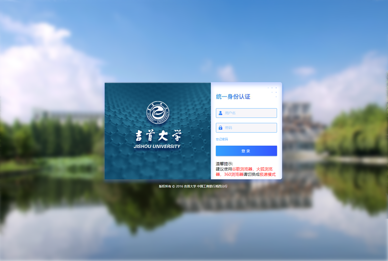 CAS统一身份认证平台界面