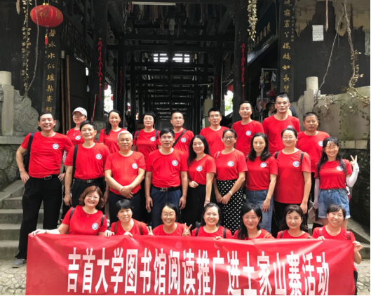 为落实校工会关于开展教职员工“同校共读”活动的通知精神,深化教职工主题阅读活动 ,7月22日上午7点半,图书馆分工会组织全馆职工分别从吉首校区和张家界校区乘车出发前往湘西州龙山县红色革命老区茨岩塘和土家古村落惹巴拉开展了“不忘初心、牢记使命” 党建主题读书月活动。图书馆党总支书记石绍根、馆长颜文斌、副馆长及工会主席王月娥、副馆长徐险峰等领导与近50位会员参加了此次活动。