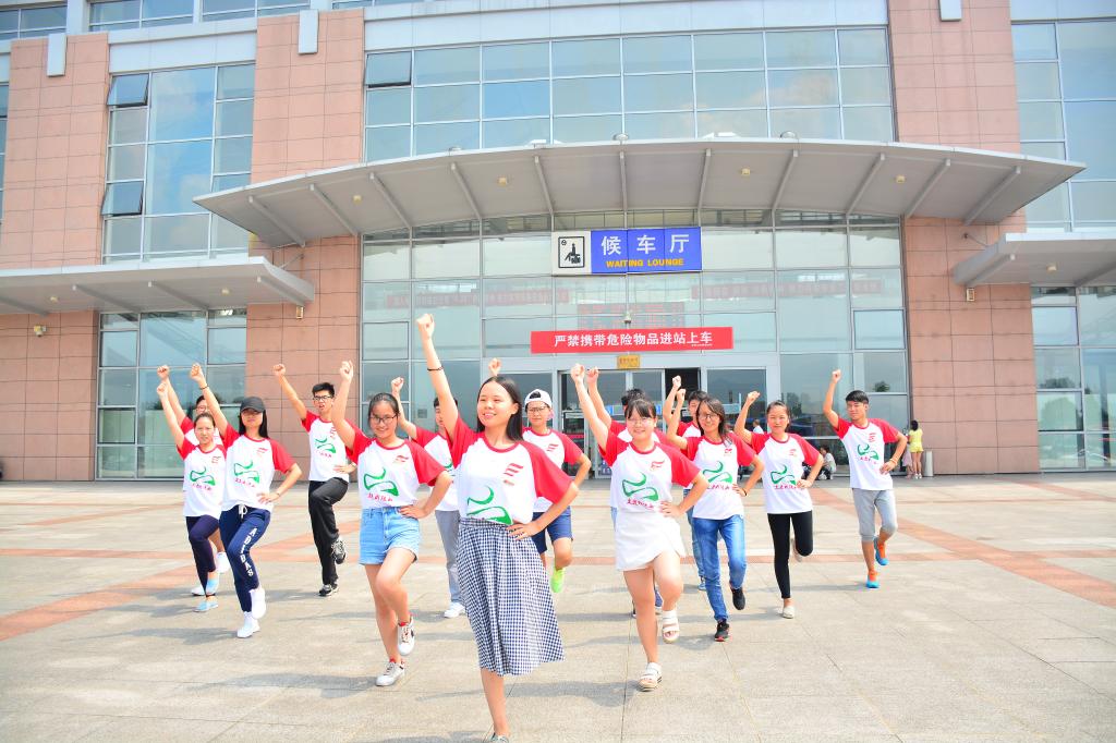 | 图为best365英国在线体育官网“小苹果”青媒中心实践团队在井冈山火车站站前广场开展快闪活动 袁宏宇摄 |