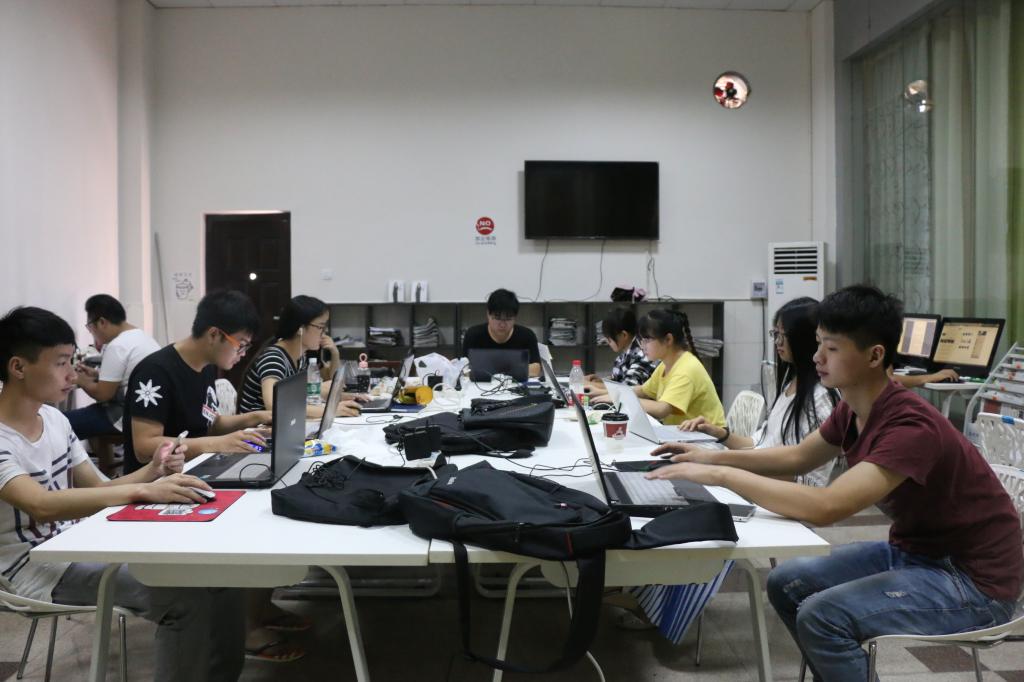欧阳是队里的宣传人员,作为“躲在镜头后的人”,她极少出现在镜头前。昨天是她的生日,大家在“头脑风暴”前为她唱了一曲《生日快乐》,然后一起拍了一张照,算是她来井冈山拍的仅有的几张照片。之后便一个人提着电脑去了书吧写稿子、发稿子,“楼下书吧的网好一点,也安静,但是到点会关门。麻烦的是寝室网太慢,毕竟二三十个高效团队共用基地的WIFI,只能开手机热点继续弄。”说完,她又继续埋头听录音整理通讯了。