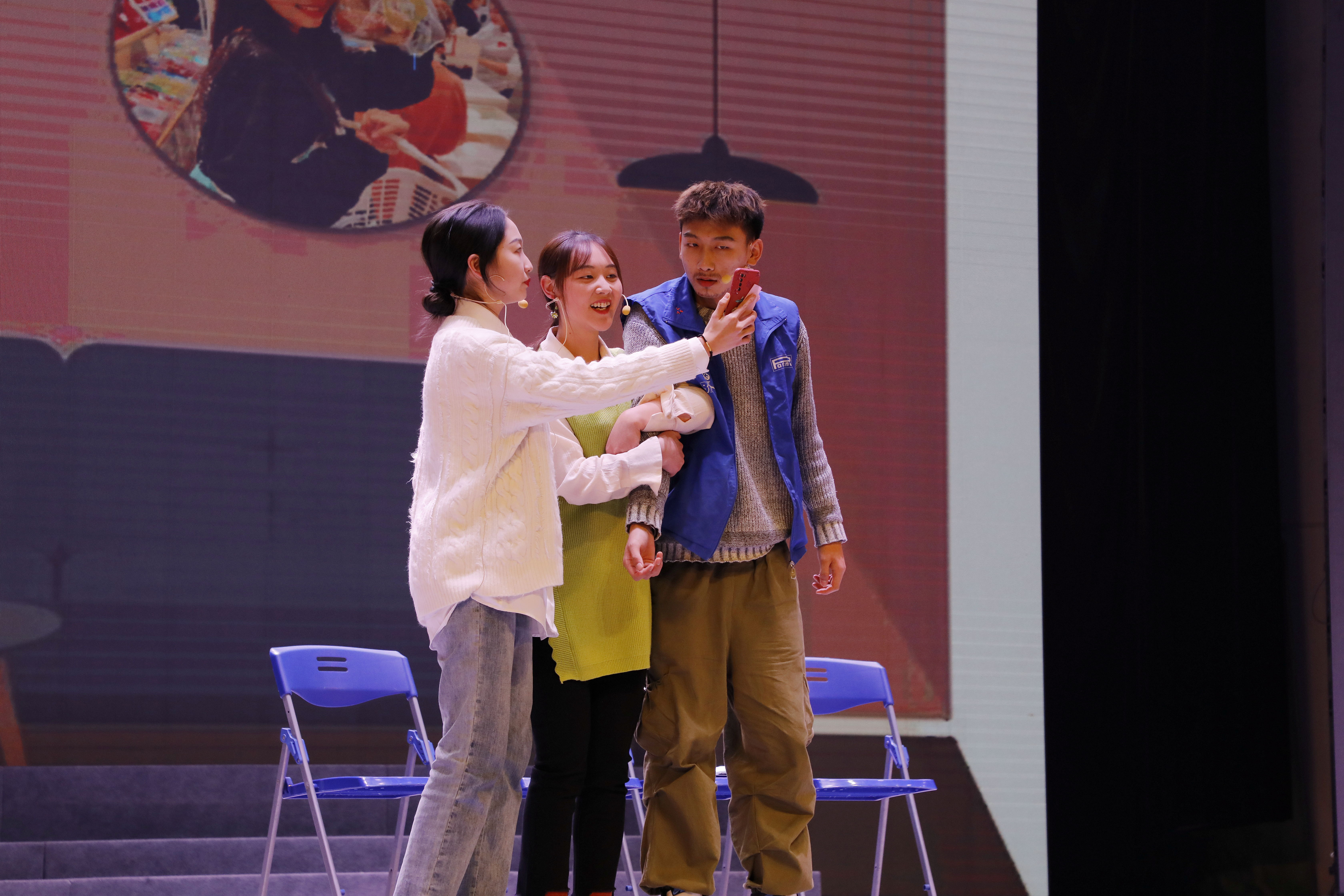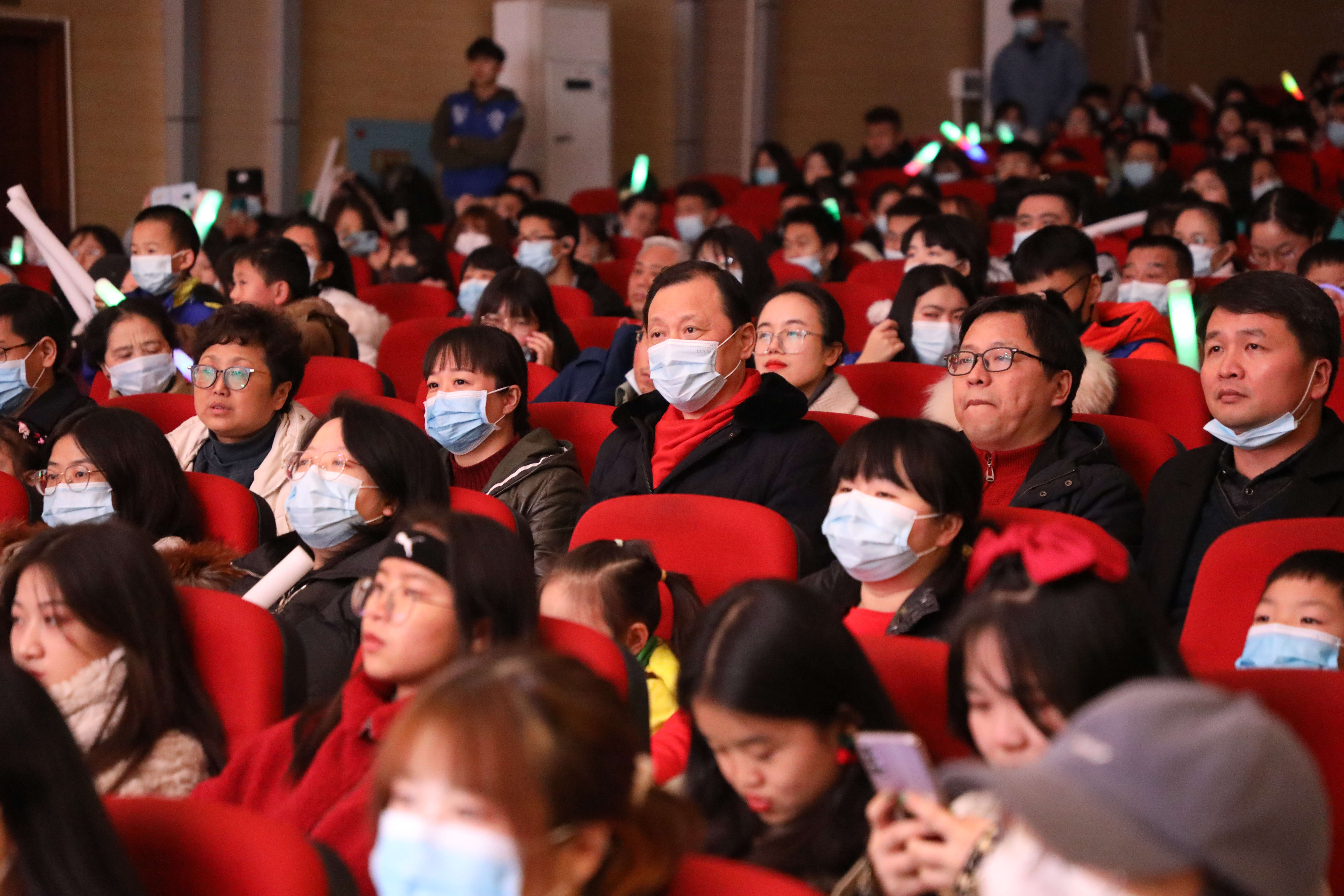 精彩纷呈的节目不时赢得观众的阵阵掌声,晚会通过手机进行了现场直播,还采用微博墙的形式与现场观众互动并赠送小礼品。虽然天气寒冷,但现场气氛热烈。很多同学拿出手机录下小视频,与朋友共同分享这份快乐。