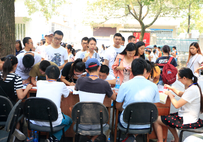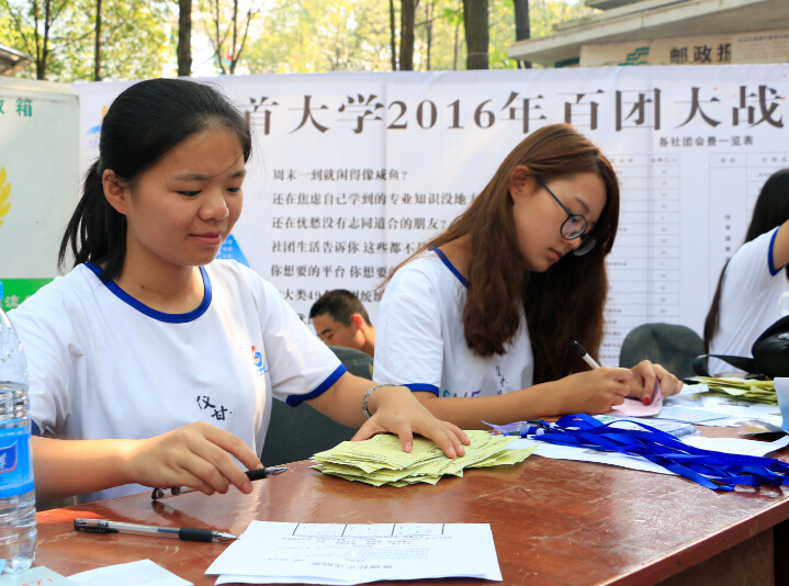 图为社联工作人员进行社团招新工作 杜雨摄 |